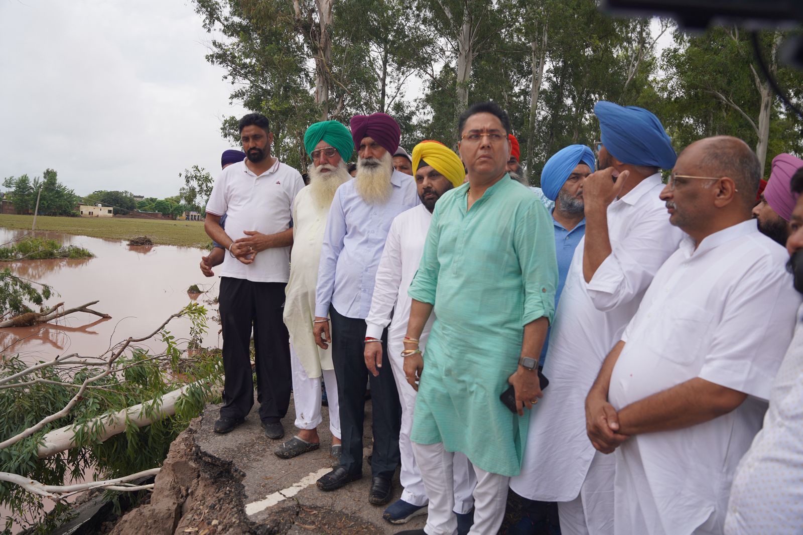 ਰਮਦਾਸ ਤੋਂ ਅੱਗੇ ਪਿੰਡ ਘੋਨੇਵਾਲ ਵਿਖੇ ਹੜ ਪੀੜਿਤ ਇਲਾਕੇ ਦਾ ਜਾਇਜ਼ਾ ਲੈਂਦੇ ਹੋਏ ਕੈਬਨਿਟ ਮੰਤਰੀ ਸ੍ਰੀ ਅਮਨ ਅਰੋੜਾ, ਸ ਹਰਭਜਨ ਸਿੰਘ ਈਟੀਓ, ਸ ਕੁਲਦੀਪ ਸਿੰਘ ਧਾਲੀਵਾਲ ਅਤੇ ਹੋਰ ਆਗੂ।