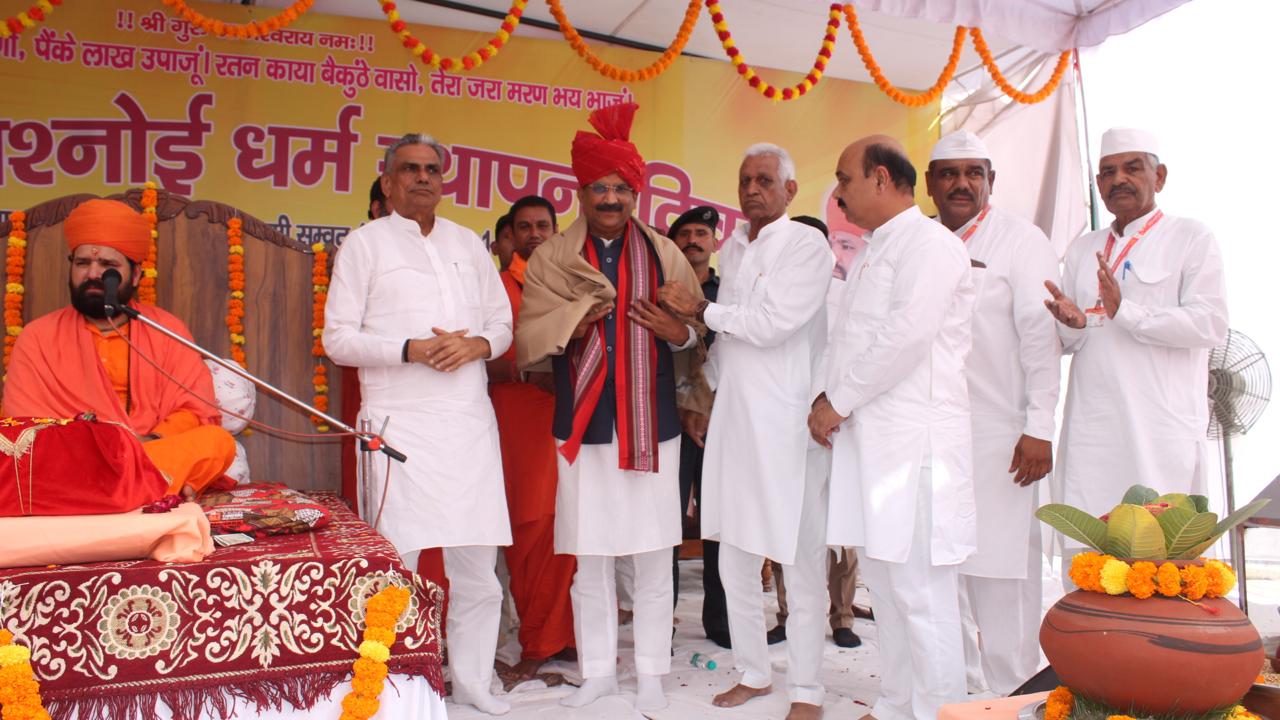 कार्यक्रम में कैबिनेट मंत्री कृष्ण कुमार बेदी तथा भाजपा के वरिष्ठ नेता एवं पूर्व विधायक दुड़ाराम ने विशेष रूप से शिरकत की। कैबिनेट मंत्री कृष्ण कुमार बेदी ने कहा कि बिश्नोई समाज ने सदैव मानवता, जीवों के प्रति करुणा और पर्यावरण संरक्षण के क्षेत्र में अनोखा उदाहरण प्रस्तुत किया है। बिश्नोई धर्म की शिक्षाएं आज भी समाज को प्रकृति के साथ संतुलन बनाकर जीवन जीने की प्रेरणा देती हैं। बिश्नोई धर्म की मूल भावना जीव मात्र से प्रेम ही सच्ची भक्ति है का संदेश आज भी उतना ही प्रासंगिक है। उन्होंने श्रद्धालुओं से जीवन में दया, सेवा और संयम को अपनाने का आह्वान किया।