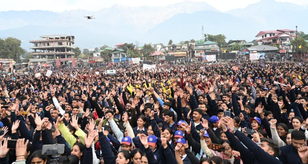 While addressing the gathering at Police Ground, Chief Minister Sukhu issued a stern warning to the chitta mafia, asserting that drug peddlers “now have no place to hide anywhere in Devbhoomi.” He said the current State Government has implemented the PIT-NDPS Act — which had remained dormant for years — leading to the detention of 46 major drug traffickers. “Every single rupee earned from drugs will be seized,” he declared, adding that the administration had already confiscated ₹46 crore worth of illegal property. “We will not stop until every trace of Chitta is wiped out from Himachal,” he asserted, emphasizing that this was not only a fight against traffickers but against the entire drug mafia network.