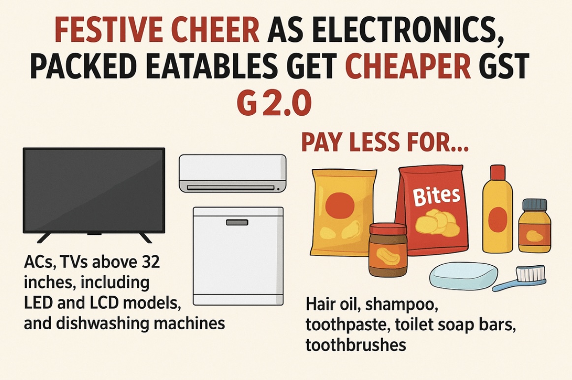 ਨਵੀਂ ਦਿੱਲੀ, 4 ਸਤੰਬਰ:  ਭਾਰਤ ਸਰਕਾਰ ਨੇ ਜੀ ਐਸ ਟੀ ਵਿੱਚ ਫੇਰ ਬਦਲ ਕਰਦਿਆਂ ਛੋਟੀਆਂ ਕਾਰਾਂ, ਮੋਟਰਸਾਈਕਲ, ਟੁੱਥ ਪੇਸਟ, ਪੈਕਡ ਖਾਣਾ, ਐਲ ਸੀ ਡੀ, ਐਲ ਈ ਡੀ, ਏ ਸੀ, ਨਮਕੀਨ ਭੁਜੀਆ, ਟਰੈਕਟਰ, ਟਰੈਕਟਰ ਟਾਇਰ ਜਿਹੀਆਂ ਚੀਜ਼ਾਂ ਦੀ ਕੀਮਤ ਘਟਾ ਦਿੱਤੀ ਹੈ ।